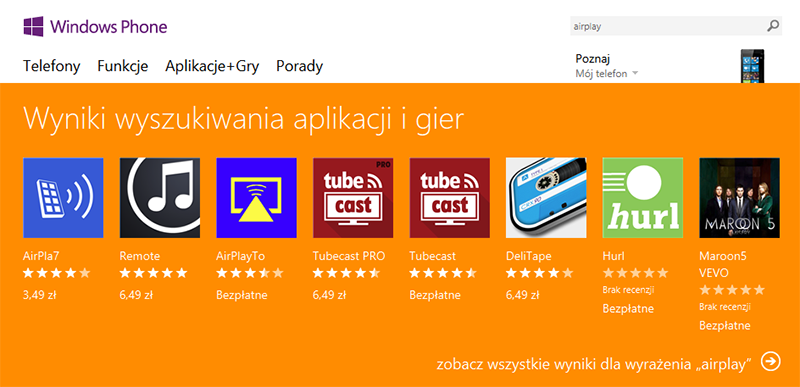 Właściciele smartfonów działających pod kontrolą systemu Windows Phone także znajdą coś dla siebie, choć wybór jest już znacznie bardziej ograniczony.