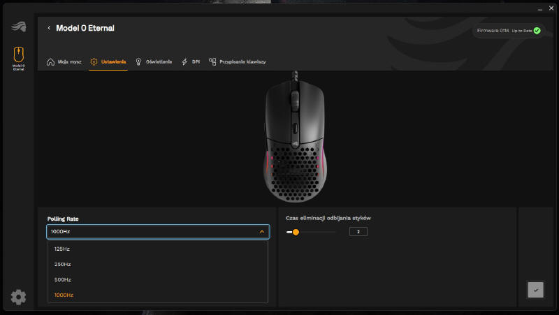 Standardowo możemy w programie zaprogramować funkcje przycisków, ustawić próbkowanie czy wartość DPI.