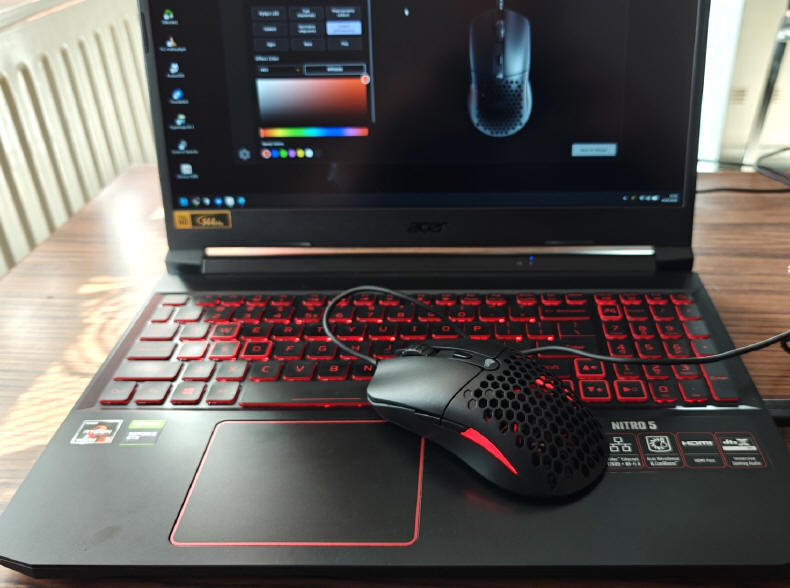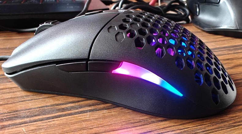 Migawka aparatu trochę wyolbrzymia ten efekt i w naturze nie jest to aż tak mocno widoczne. Za to jest to jedyna mysz w moich rękach, która może zapewnić nam całkowicie białe podświetlenie.