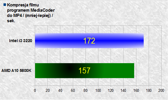 Równie nieżle A10 5800K radzi sobie z konwersją materiału wideo za pomocą programiku MediaCoder.