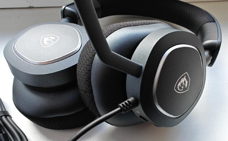 MSI w tym produkcie postawiło na komfort użytkowania podczas dłuższych rozgrywek, stąd zaprojektowano dość szeroki, mocno wyścielony miękkim podszyciem pałąk o skokowej regulacji opuszczania nauszników (z wyraźnym klikiem zapadki). Do kadłubków kryjących neodymowe przetworniki użyto dobrej jakości plastików, a wszystko zostało starannie z sobą spasowane, co w słuchawkach jest niezmiernie ważną sprawą. Jakiekolwiek trzaski i skrzypienia podczas ruchów głowy, mogą popsuć nawet najdoskonalszy odtwarzany dźwięk, ale tutaj (podczas trzech tygodni używania), wszystko jest OK. Nauszniki obracają się o 90 stopni, co pomaga w ich spakowaniu do torby lub plecaka od laptopa.