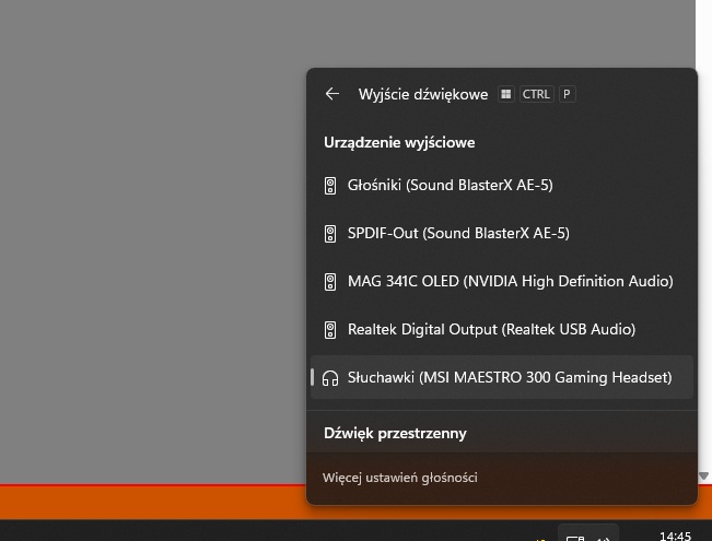 Jeśli chodzi o ich brzmienie, to będzie to wybór w stronę użytkowników, którzy lubią lekką dominację tonów niskich (ale bez przesady) i trochę rozjaśnioną scenę audio. Co trzeba przyznać MSI MAESTRO 300, to są one głośne, naprawdę głośne i do wysokiego ustawienia Volume (tak mniej więcej 80%), nie wykazują skłonności do większych zniekształceń. Jednak, jest to brzmienie dość specyficzne, mające lekko poddźwięk "tunelowy", trudno to nazwać, ale mającym skłonność do lekkiego pogłosu, szczególnie w środkowym paśmie toru audio. Wysokie tony nie są przesadne, ale dość wyraźne. Tutaj wyraźnie czuć, że produkt ten skrojono pod zastosowanie w grach, bo świetnie na mim brzmią dialogi naszych bohaterów rozgrywki, strzały, wybuchy, odgłosy skradania (te brzmią wręcz kinowo, jak z filmu), jednak do słuchania muzyki (jeśli ktoś szuka słuchawek do ogólnego zastosowania), czegoś im brakuje. I tu na szczęście pojawia się oprogramowanie, które pozwala rozszerzyć możliwości tego sprzętu. Wpierw instalujemy aplikację MSI Center, która wykrywa nasze słuchawki i przydziela im dedykowany sterownik.