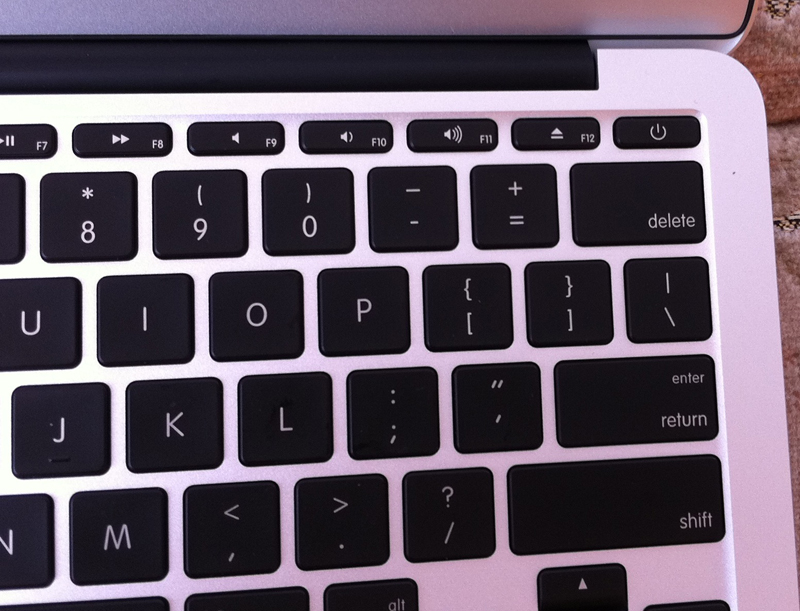 Air podobnie jak i inne MacBooki posiada bardzo wygodną klawiaturę. Piszę się na niej przyjemnie i wręcz intuicyjnie. Przyciski pracują należycie, a odstępy między nimi praktycznie niwelują błędy. Ubolewam jedynie nad tym, iż w przypadku tego modelu zrezygnowano z podświetlenia przycisków, co znacznie podwyższa komfort pracy.