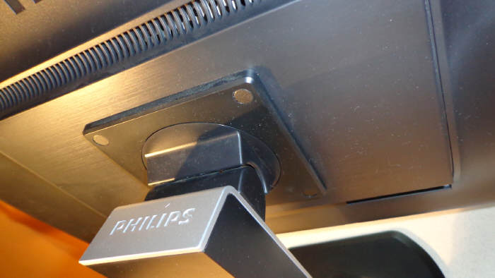 Na spodzie tylnej obudowy umieszczono dwa odrębne panele do podłączania okablowania. Z lewej strony (patrząc od tyłu monitora), umieszczamy zatem wtyczkę kabla zasilania i końcówkę jack, jeśli mamy zamiar skorzystać z wbudowanych głośników.