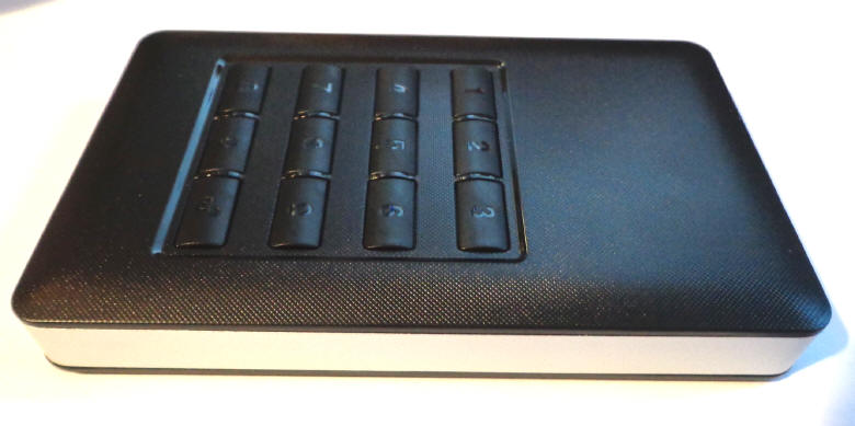 Rhino Code wyposażono w aluminiową ramkę otaczającą opcjonalny dysk, na której z dwóch stron zamontowano panele z tworzywa sztucznego. Górny przymocowany jest na stałe i wyposażony został w klawiaturę numeryczną oraz klawisze LOCK i UNLOCK. Dolna klapka jest wysuwana i zabezpieczy nasz dysk od spodu.