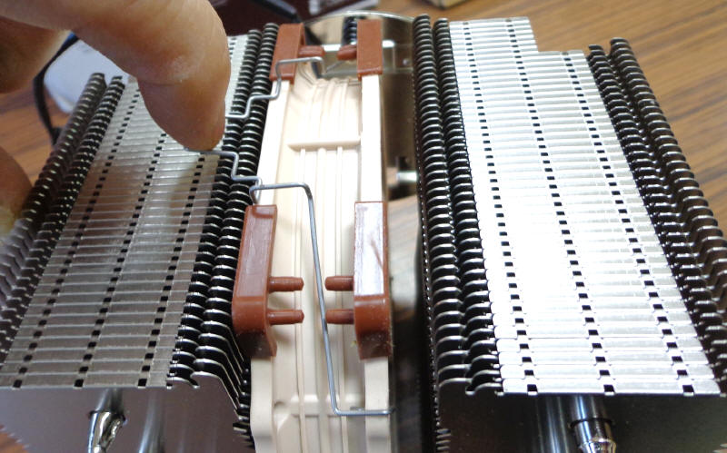 Miedzy wieżami umieszczono dobrze nam znany wentylator Noctua NF_A15 PWM, dodatkowo wyposażony w zestawie w reduktor obrotów L.N.A. wyciszający jego pracę w zakresie od 1500 do 1200 RPM.