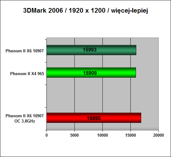 Na początek standardowo zacznę od programu 3D Mark 2006. Pomiary wykonano na najnowszej dostępnej wersji sterownika dla karty graficznej – GeForce 197.45 WHQL.