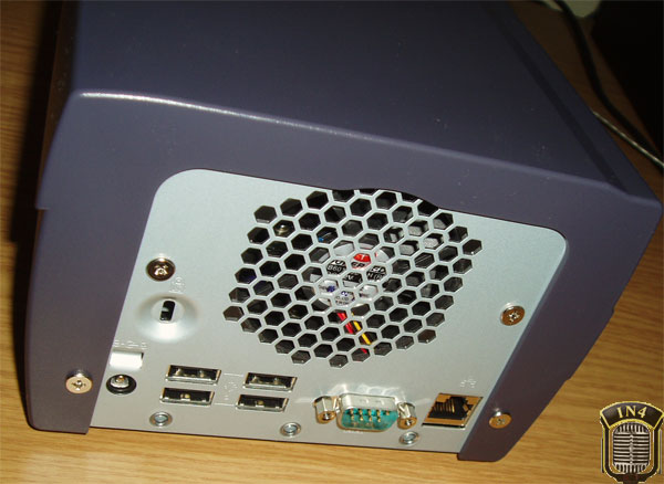 W tym miejscu należy wspomnieć nieco o chłodzeniu sprzętu. Jak widzicie w środku obudowy, nad wszystkimi komponentami i pod HDD jest dosyć sporo wolnego miejsca. Tak zaprojektowana konstrukcja pozwoliła na zastosowanie tylko jednego wiatraka, który bez problemu daje radę z utrzymaniem odpowiedniej temperatury (około 40 stopni na procesorze). Jest on zamontowany na tylnym panelu i ustawiony w taki sposób, aby wydmuchiwał powietrze z obudowy. Ponieważ jest ona szczelnie zamknięta, powietrze zostaje jednocześnie zasysane do środka przez „kratkowany” przód. Dzięki takiemu rozwiązaniu wszystkie komponenty i radiatory wewnątrz owiewane są zimnym powietrzem. Należy także zaznaczyć, że obroty wiatraka są uzależnione od temperatury. Podczas startu Snap Server zostaje „przedmuchany” zimnym powietrzem, następnie „śmigło” znacznie zwalnia (i przy okazji hałas znika). Podczas normalnej pracy z NAS’a dobiega niezbyt głośny szum. Trzeba przyznać, że chłodzenie działa bardzo sprawnie. Po prawie dziesięciu godzinach pracy, sytuacja prezentowała się następująco: