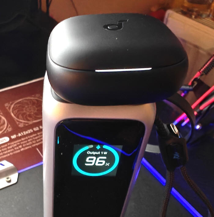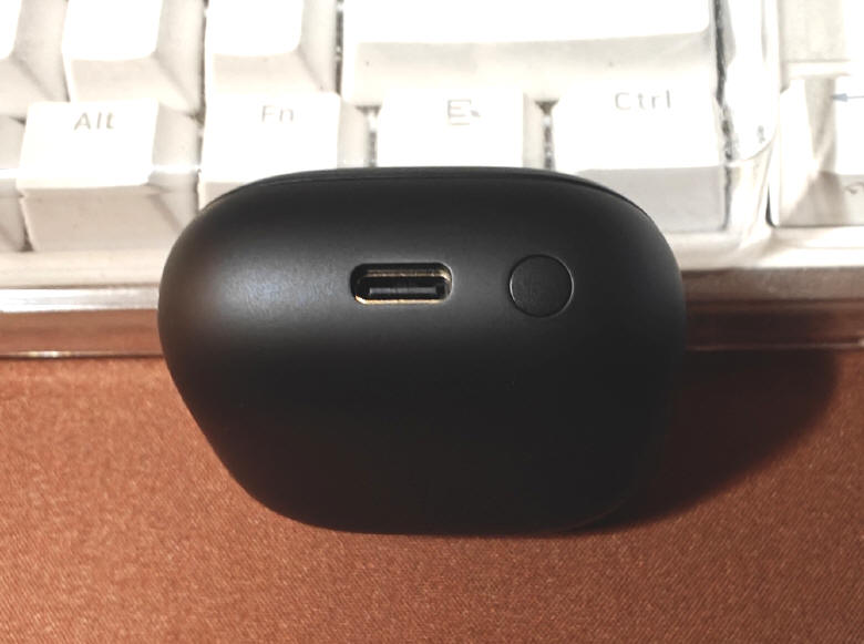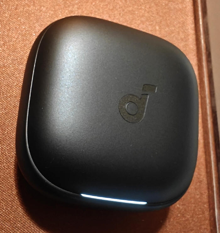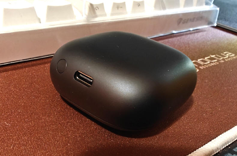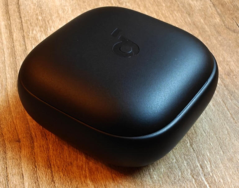 Etui jest małe, dość kompaktowe i nie zajmie w naszej kieszeni zbyt dużo miejsca. Ciekawy jest system jego otwierania, bo jego wieko nie otwiera się, jak klapka szkatułki, a płynnie przesuwa w bok, wspomagając ruch napinaniem i uwalnianiem energii z wbudowanej sprężyny, co pozwala otwierać się i domykać z charakterystycznym kliknięciem. W jednej z krawędzi etui zgrabnie wkomponowano pasek LEDowy, informujący nas o stanie naładowania magazynu, podłączenia słuchawek do ładowania i samego procesu uzupełniania energii (sygnały pulsowania lub przesuwania się fali światła).