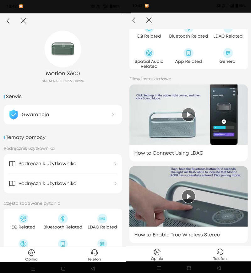 Producent obiecuje Nam możliwość grania nawet przez 12 godzin, ale to chyba raczej bardziej po cichu, bo przy mieszanym używaniu w zakresie 25-50 procent mocy na pasku Volume w aplikacji na telefonie, Motion X600 zaczął się upominać o doładowanie po około 8 godzinach pracy. Na "rezerwie" pewnie pograłby jeszcze coś koło godziny, ale lepiej szybciej zacząć poszukiwania ładowarki. To i tak jest niezły czas, szczególnie że będzie on wypełniony muzyką naprawdę dobrej jakości. Świetnie też słucha się dobrze nagranych audiobooków lub lektorów o niskim, przyjemnym w brzmieniu głosie, bo usłyszymy wiernie odwzorowany tembr ich mowy, każdy akcent, przełknięcie śliny, a nawet oddech, o ile inżynierowie dźwięku nie powycinali tych zakresów w torze audio.