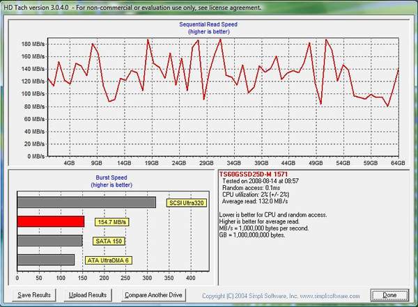 Do testów syntetycznych posłużyłem się kilkoma dobrze znanymi programami które w dosyć dokładny sposób zobrazują wydajność dysku. Każdy z programów był „trialem” lub „freeware”, w wersjach najnowszych jakie są aktualnie dostępne. Ważnym elementem były w tym przypadku testy praktyczne które pozwoliły mi na małe porównanie do dysku którego używam na co dzień. Pominąłem testy z systemu Windows XP ze względu na praktycznie zerową różnicę wyników. Nieco dziwna sytuacja zaistniała przy wykrywaniu objętości dysku, producent podaje 60GB, co widać na naklejce jednak niektóre programy wykrywają go jako 64GB.