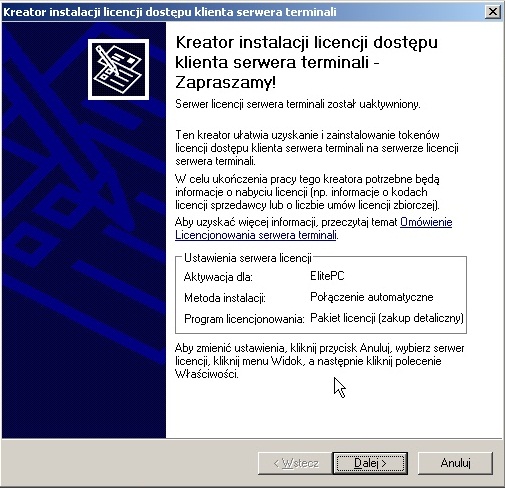 Kolejne kroki są intuicyjne w konfiguracji, ale zależne od rodzaju posiadanej licencji. Po kilku planszach dobrniemy do końca.
