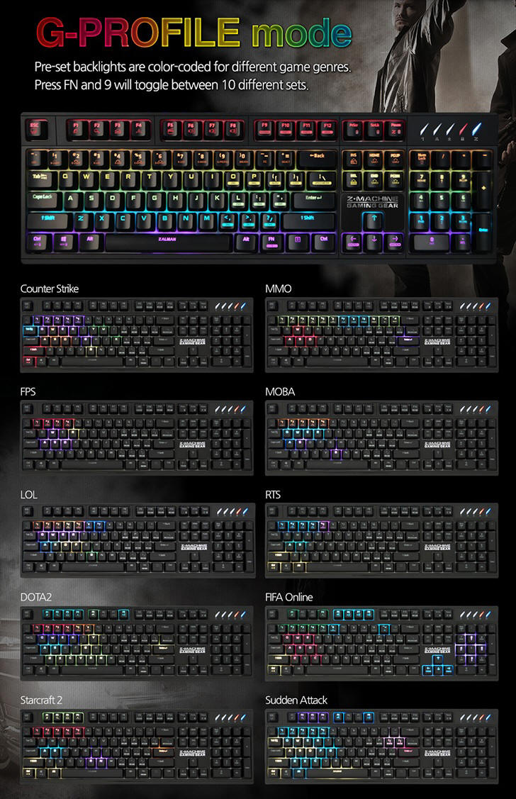 Poprzednia strona trochę się nam rozciągnęła, więc koniec opowieści o możliwościach klawiatury ZALMAN ZM-K900M RGB dokończę już w podsumowaniu. Jak widzieliście na załączonych filmach i zdjęciach, produkt ten ktoś zaprojektował wręcz genialnie. Po prostu podłączamy klawisze do komputera i od razu możemy się cieszyć dostępem do wszystkich opcji podświetlenia i ustawień. Mało tego, Zalman umożliwi nam wykorzystanie dziesięciu gotowych kodów do ustawień iluminacji przycisków, przydzielonych do rodzaju gier i ich konkretnych tytułów.
