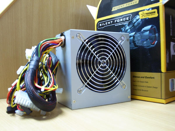 Urządzenia Pentagrama należą do grupy lubianych przezemnie zasilaczy z wentylatorem 120 x 120mm umieszczonym w dolnej części ich obudowy. Ma to swoje dobre strony, bo zazwyczaj taki układ chłodzenia jest cichszy od systemów z jednym lub dwoma wentylatorami 80 x 80mm (pomijając oczywiście firmowe konstrukcje np. BeQuiet, Tagan) a przy tym zapewnia dobrą wymianę powietrza w obudowie i wyciąga ciepłe masy, tuż znad coolera chłodzącego procesor. Czy zaznamy ciszy z Pentagramami na pokładzie ? O tym trochę później ...