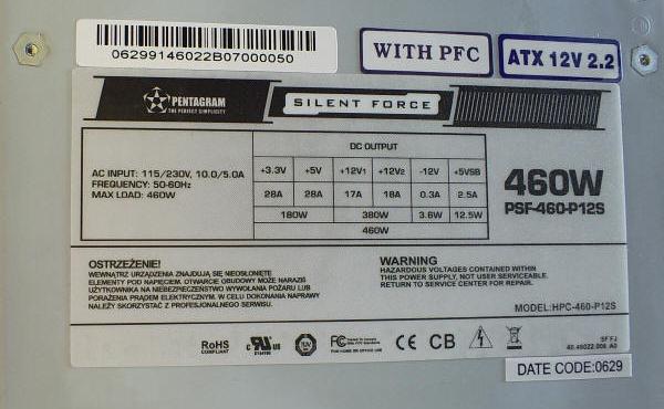 Co trzeba przyznać firmie Pentagram, to potrafią przyciągnąć uwagę potencjalnego klienta oglądającego sklepowe półki. Kartoniki sugerują kosmiczne technologie ... przynajmniej na poziomie stacji kosmicznej. Opakowanie 460-tki jest troszkę mniejsze. Znajdziemy na nim informacje o podwójnej linii +12V.