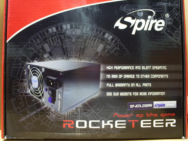 Przejdźmy do konkurencyjnej jednostki zasilającej. Opakowanie Spire SP-ATX-Z500W-EU prezentuje się dość efektownie. Czerwień w kontraście z czernią wyglądają „sportowo” a sama nazwa Rocketeer może budzić zainteresowanie potencjalnego kupującego. Dodatkowa informacja : „Power of the Game” jasno określa, do kogo kierowana jest oferta Spire.