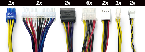 Jak widać na fotografii ze strony producenta, powinniśmy dostać jedno łącze PCIexpres 6 pin dla zasilania kart graficznych. Tymczasem w nadesłanym do nas egzemplarzu nie ma w zestawie okablowania tej końcówki !!