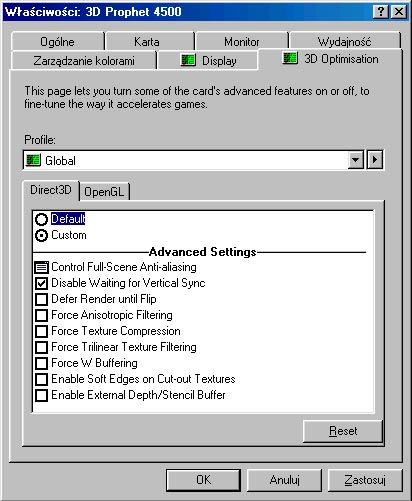 sterowniki oparte są na referencyjnych firmy PowerVR i nie rzucają na kolana mnogością opcji.